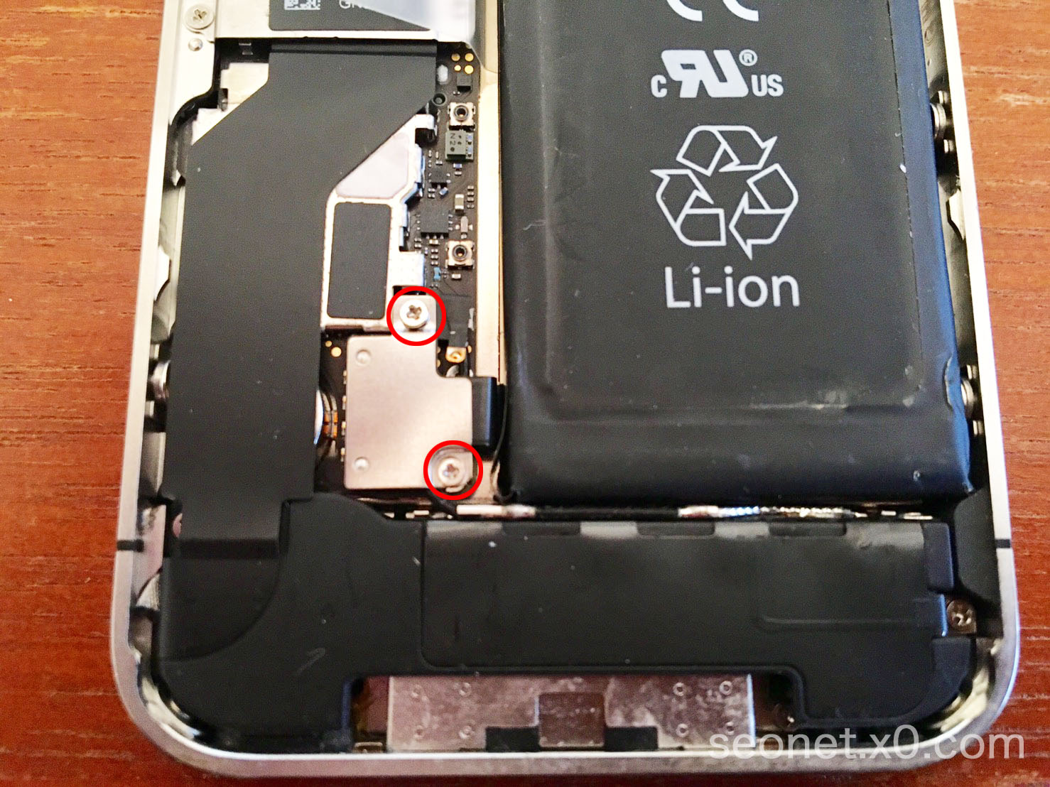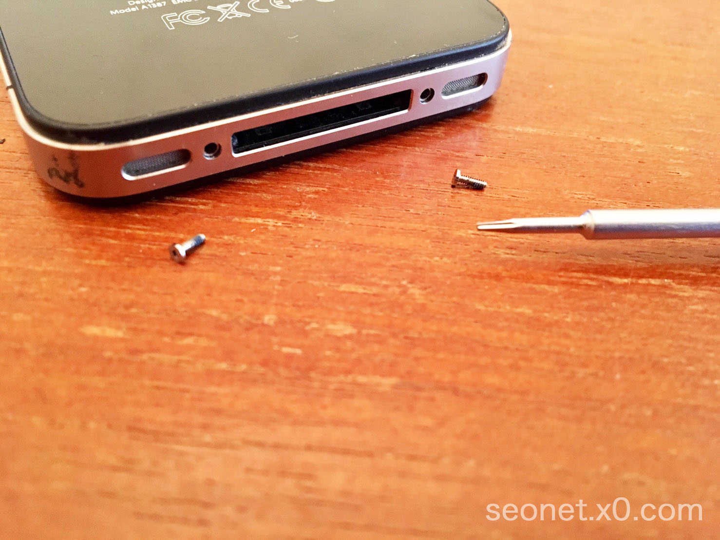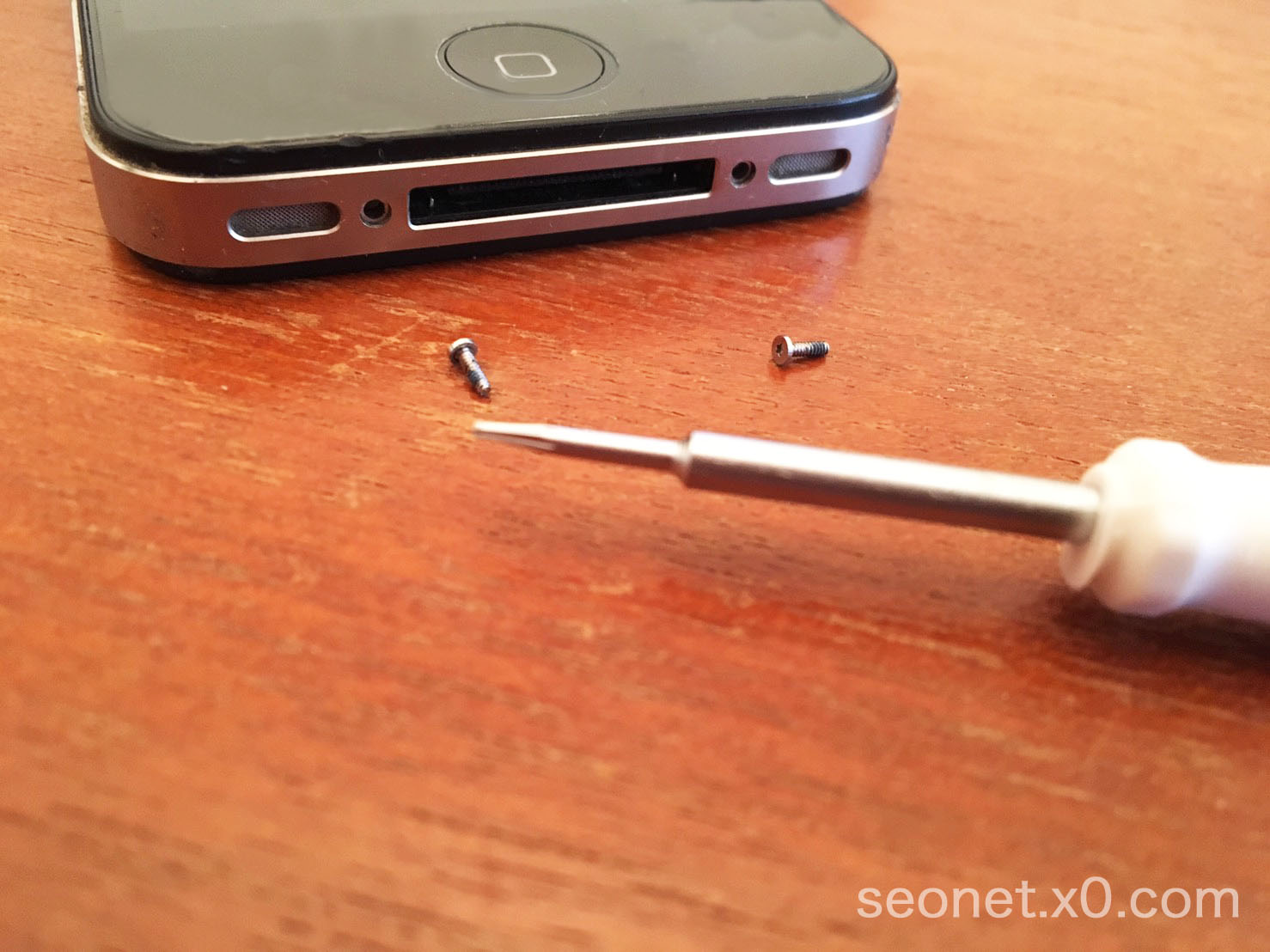 早速iPhoneの下にあるネジを外し、本体を開けていきます。