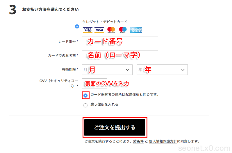 住所入力はすべて英語で書いてください。こちらの変換サイトを使えば日本語の住所がすべて英語に変換されます。(住所2は基本入力不要です。住所の文字が長い場合は住所2へ。)