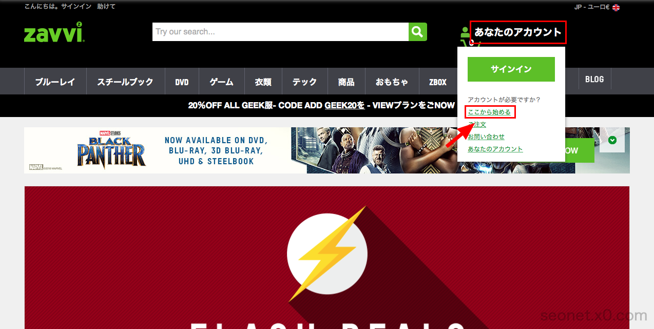 まずZavviは日本語に対応していませんので、ブラウザで上手く翻訳しながら進めていきます。