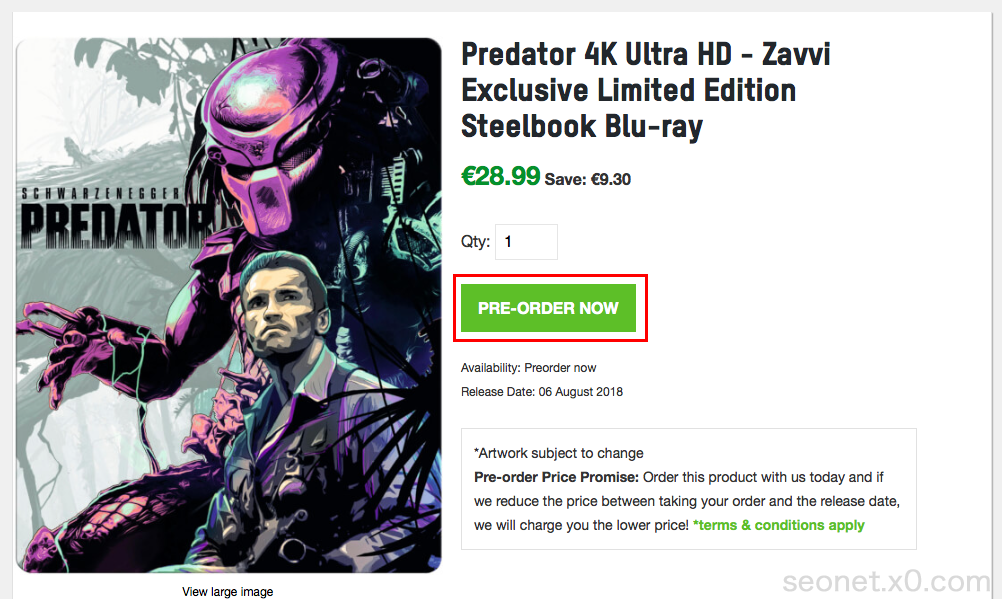 プレデターのスチブの詳細画面です。「PRE-ORDER NOW」をクリックしてカートに追加します。(プレオーダーなので予約ですね)