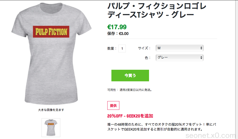 日本語に翻訳するとこのように表示されます。ちなみにこの商品は「GEEK20」とクーポン入力すると20%OFFになります。