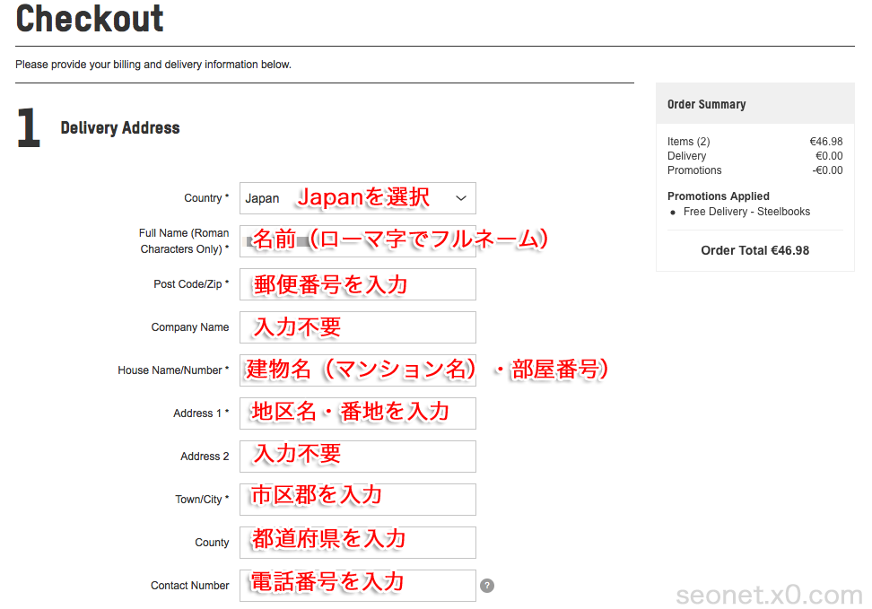 - House Name/Number:建物名(マンション名)・部屋番号を入力
