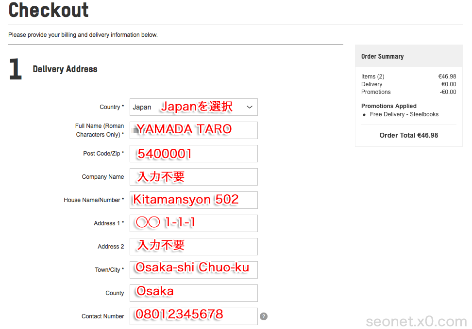 住所は「Japan」以外は日本の業者が確認するので住所の場所さえ間違っていなければ届きます。(書く欄が多少間違っていても臨機応変に対応してくれるので)