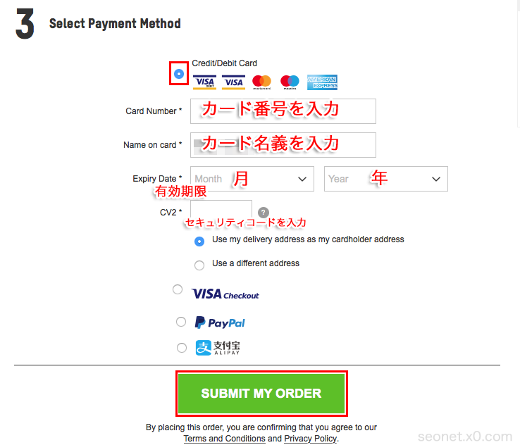 「SUBMIT MY ORDER」をクリックして注文は完了となります。