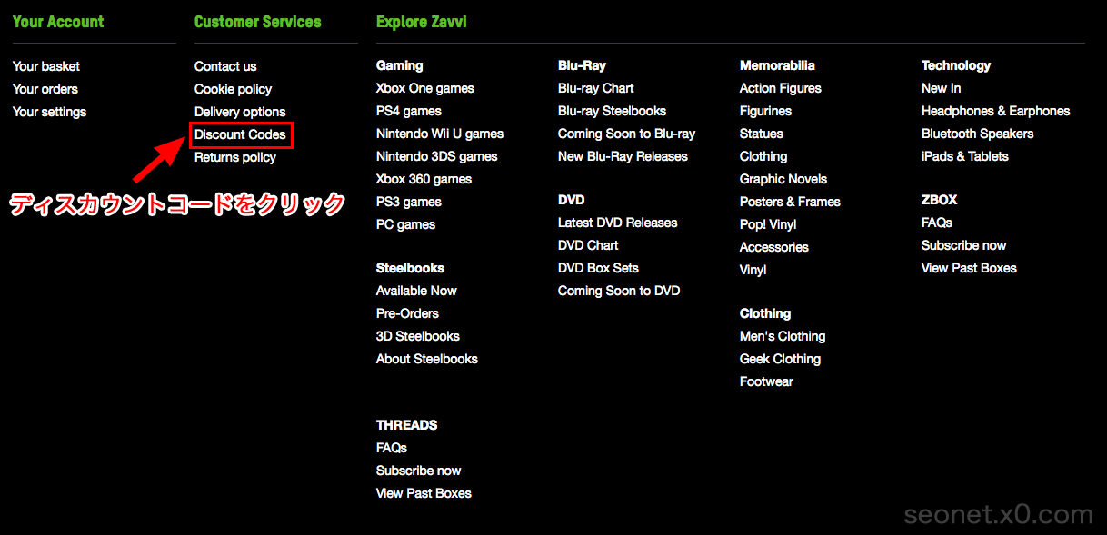ちなみにセール情報を確認するには下へスクロールして「Discount Codes」をクリックしてください。