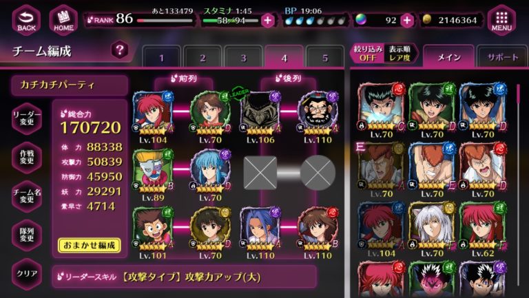 課金してますからね。ちなみに相手によって戦力を変えて戦います。